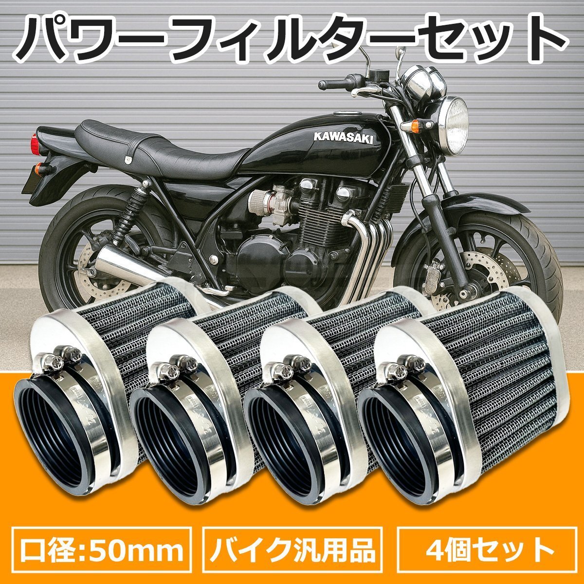 エリミネーター400 パワーフィルター 50mm 4個セット アルミ メッシュ エアクリーナー キャブ 吸気 カスタム バイク 汎用/156-145x4