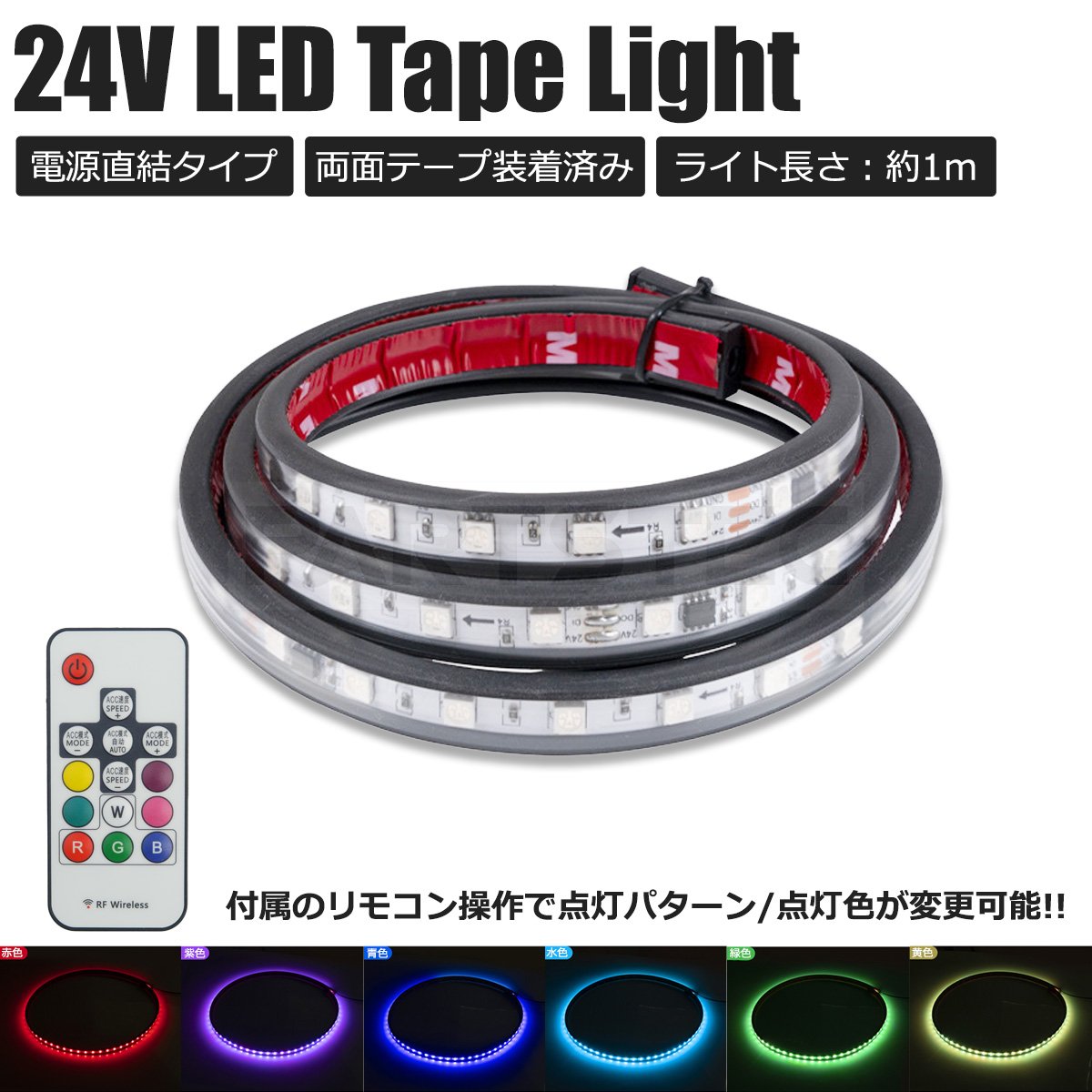 24V LED テープ ライト 1m 流れる RGB シーケンシャル イルミネーション リモコン操作 トラック 防水 汎用品 /156-197