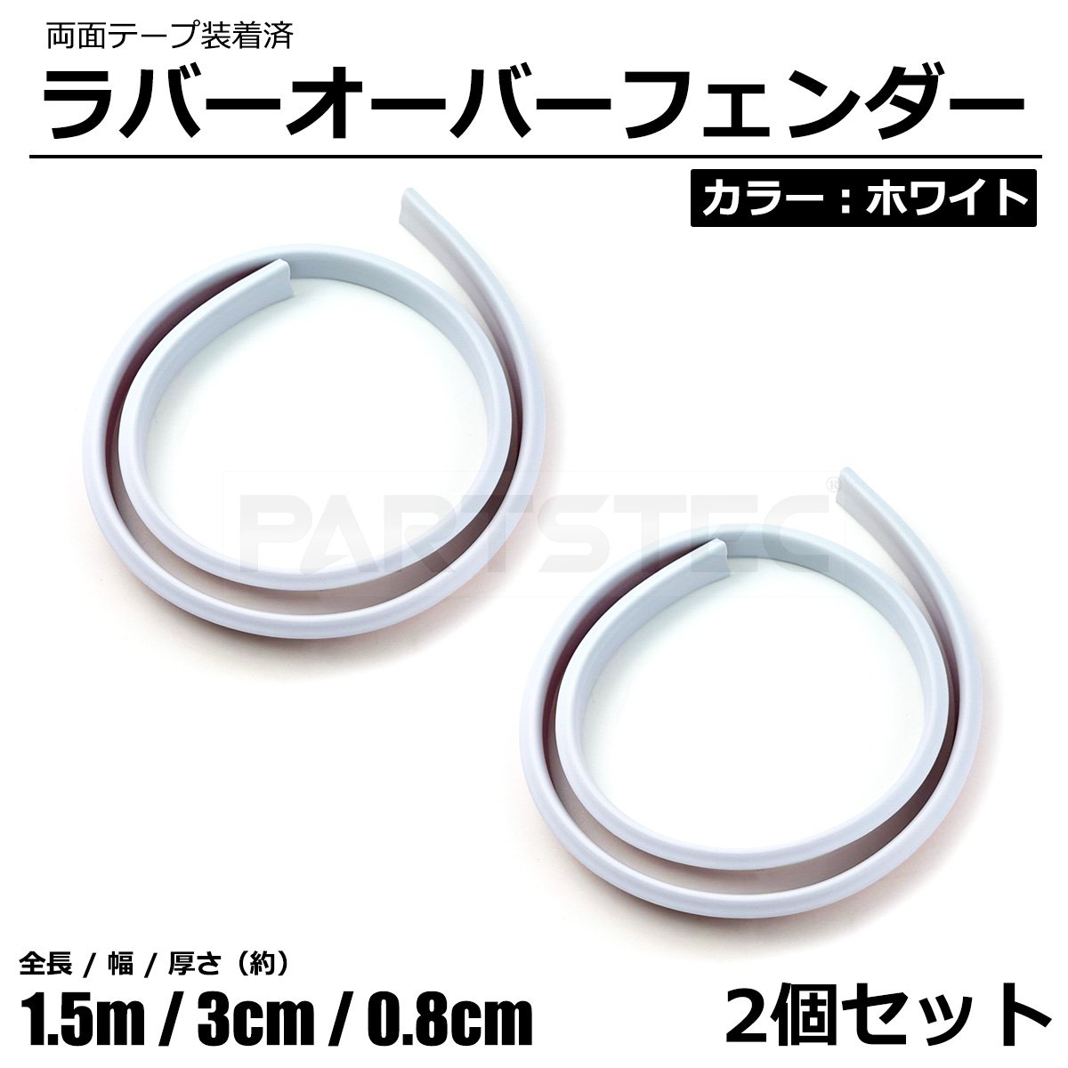オーバーフェンダー 2個セット ホワイト 白 フェンダーモール ラバーフェンダー 汎用 車検対応品 ゴム 全長1.5m 厚さ0.8cm 幅3cm /156-8x2