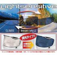 太陽光の強弱によってレンズの濃さが変化するライトセンシティブ機能を持ったシールドレンズ。