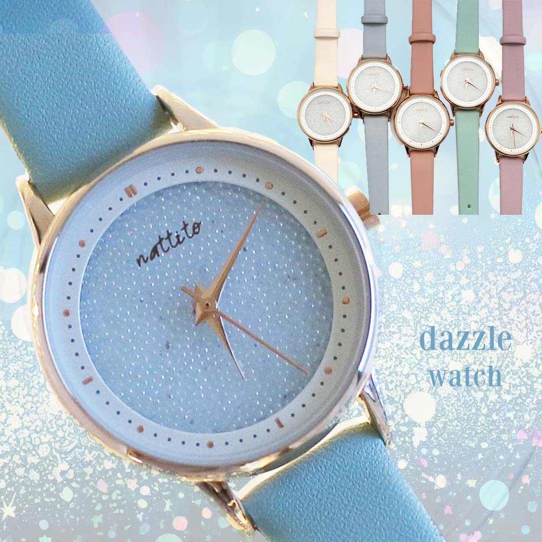 ■特徴:オーロラに輝く小さな粒を敷き詰めた、キラキラと輝くダズルウォッチ。ミニッツもしっかりと刻まれ時間の確認もバッチリ
