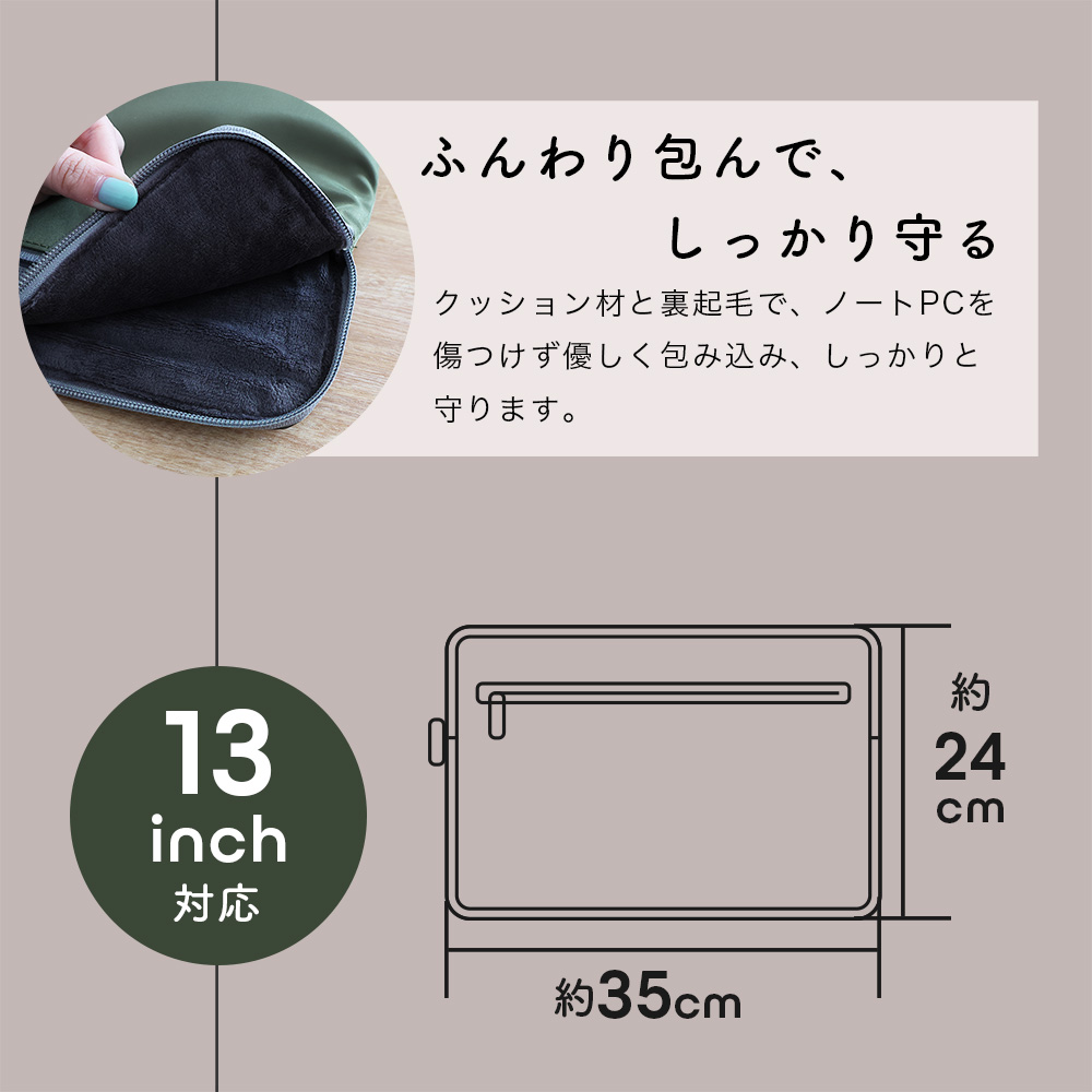 ノートパソコンを傷つけることなく優しく包み込んで守ってくれます。