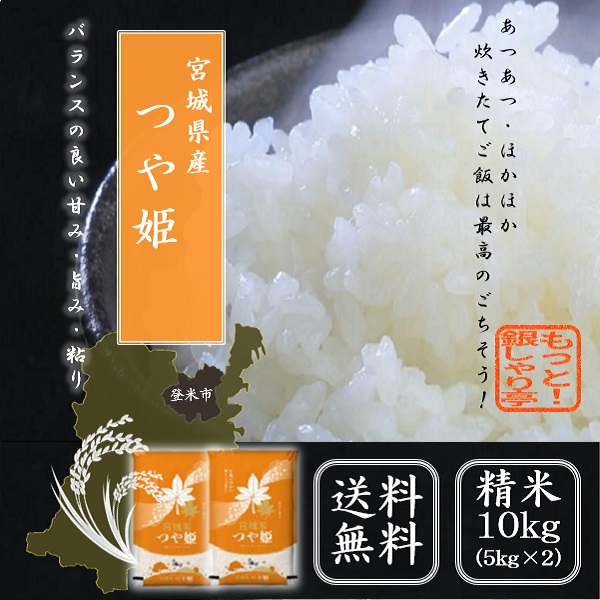 令和7年産 〈精米 つや姫 10kg〉 宮城県産 米 お米 白米 (5kg×2袋) 送料無料 安い