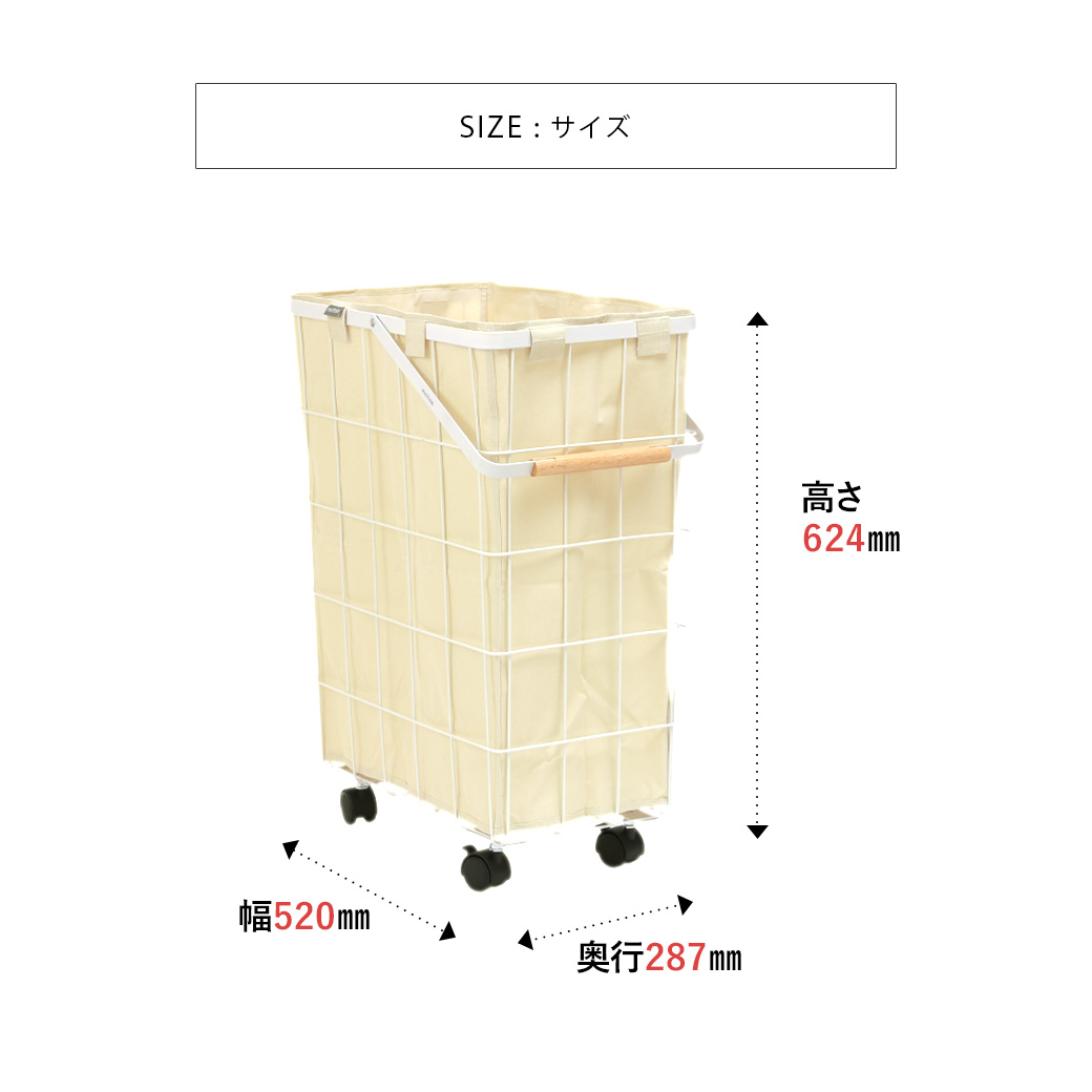 バスケットの寸法(約):外寸:478×287×571mm、内寸:440×265×575mm、容量:67L