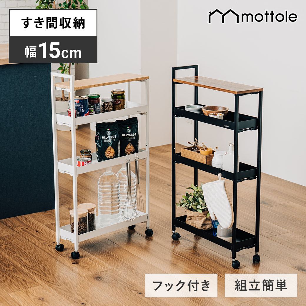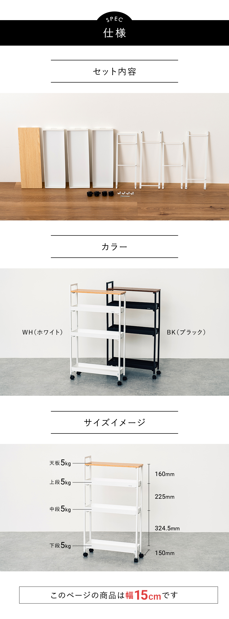 キッチンラック ワゴン キャスター付き スリム 隙間収納 ラック 15cm 4段 キッチンワゴン 木製 天板 洗面所 キッチン ペットボトル 収納 スキマ家具 おしゃれ