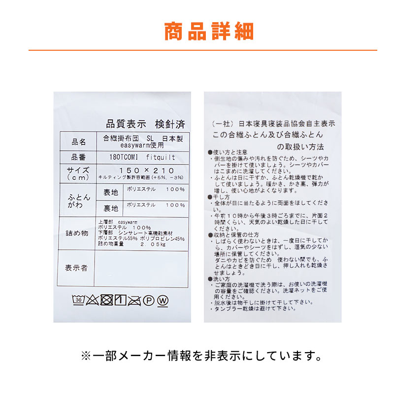 | 組成 | ■ふとんがわ:ポリエステル100% |