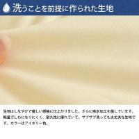 | 生地はしなやかで優しい感触に仕上がりました。さらに吸水加工を施しています。 軽量でしわになりにくく、耐久性に優れていて、ザブザブ洗っても大丈夫な生地です。カラーはアイボリー色。 | |