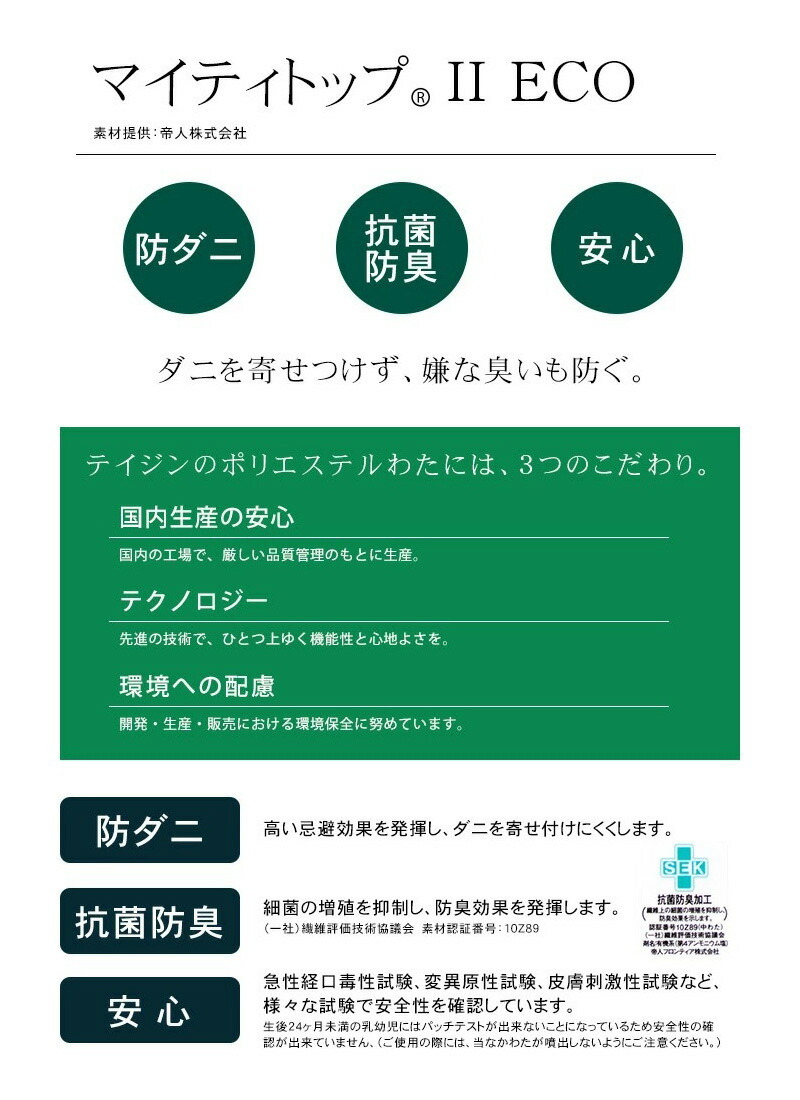 また、巻わたにはテイジンの防ダニ・抗菌・防臭わた「マイティトップ」を使用!