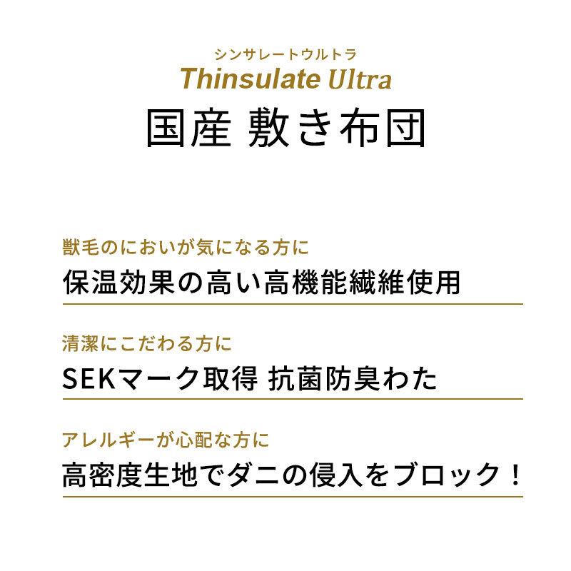 敷き布団 敷布団 シングル シンサレート ウルトラ 日本製 テイジン防ダニ抗菌防臭わた 暖か 合繊 敷きふとん