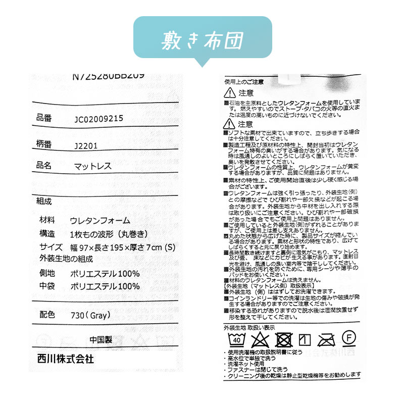 | 組成 | ふとんがわ:ポリエステル85%・綿15% |