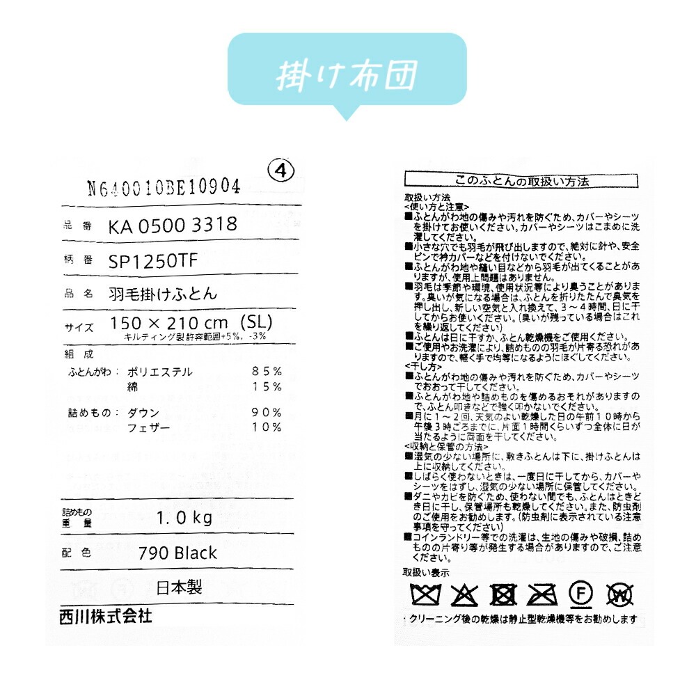 商品名 | 羽毛掛け布団 |
