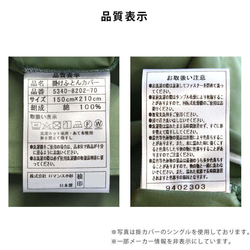| ご注意 | ■できるだけ実物と同じ色合いになるようにしていますが、パソコンモニタの環境などによって実物と色合いが異なる場合がございます。予めご了承ください。 ■お洗濯の際には取り扱い方法及びご使用の洗濯機の説明書をよくご確認ください。 ■ボックスシーツのみの販売です。他のカバーや布団本体は付属しません。 ■一部写真は敷き布団カバーで代用しております。 |