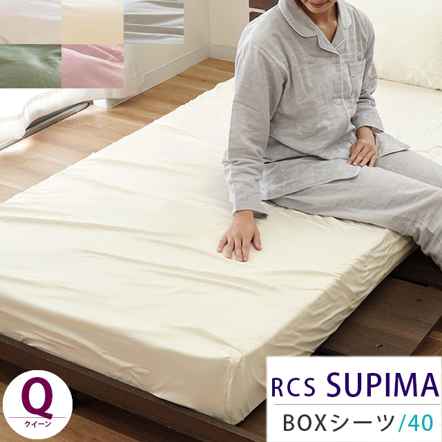ボックスシーツ クイーン マチ40cm RCSスーピマ 綿100% 日本製 高品質 抗菌防臭 BOXシーツ ロマンス小杉