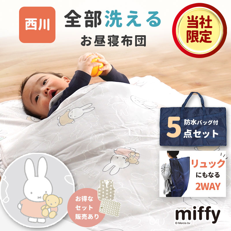 | 使用上の 注意事項 | ■対象年齢:25ヶ月以上 ■この商品は、あくまでもお昼寝用としてのおふとんですので、長時間の睡眠には適しておりません。 ■うつぶせ寝でのご使用はお避けください。 ■製品に表示されている方法でお洗いください。 |