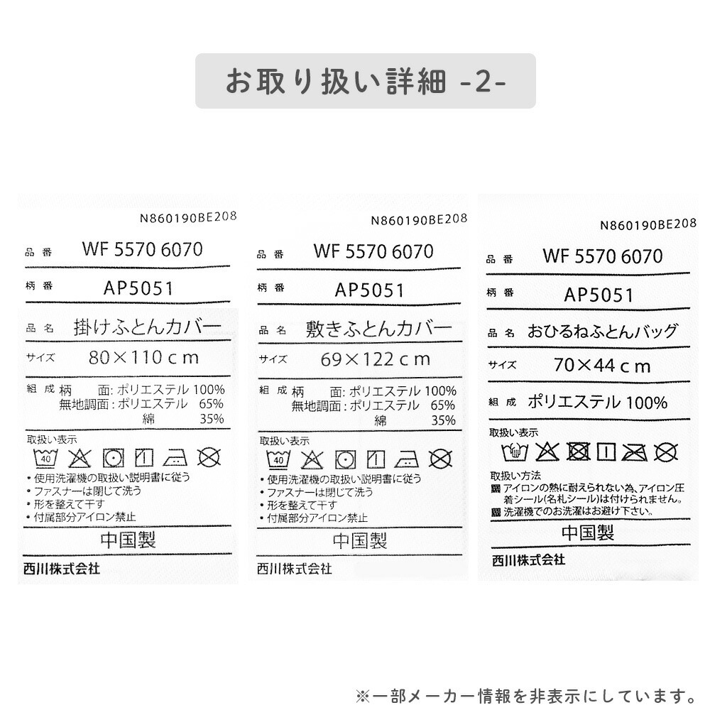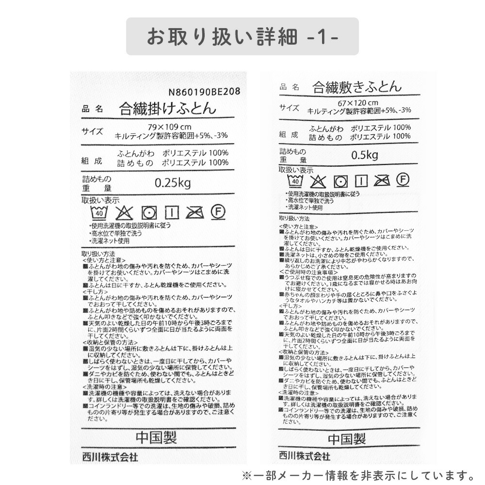 | 製品重量 | 掛けふとん:約450g |