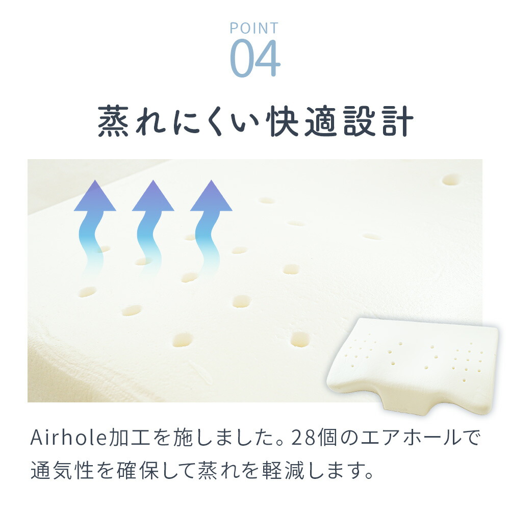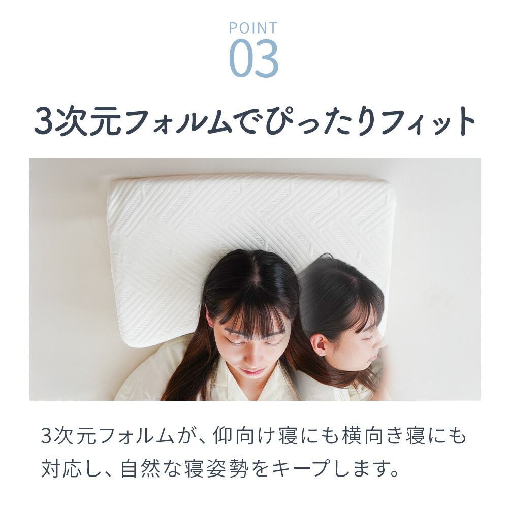 三次元フォルムが仰向け寝にも横向き寝にも対応し、自然な寝姿勢をキープします。
