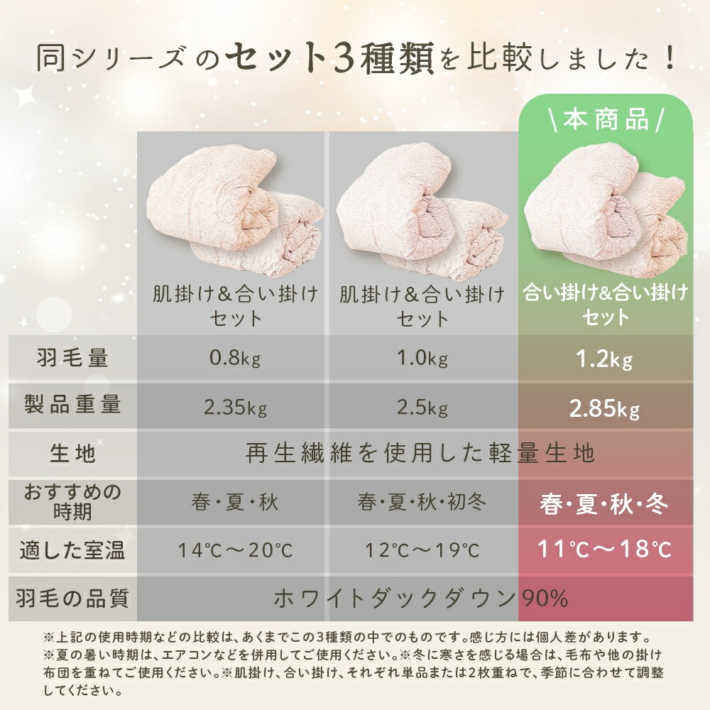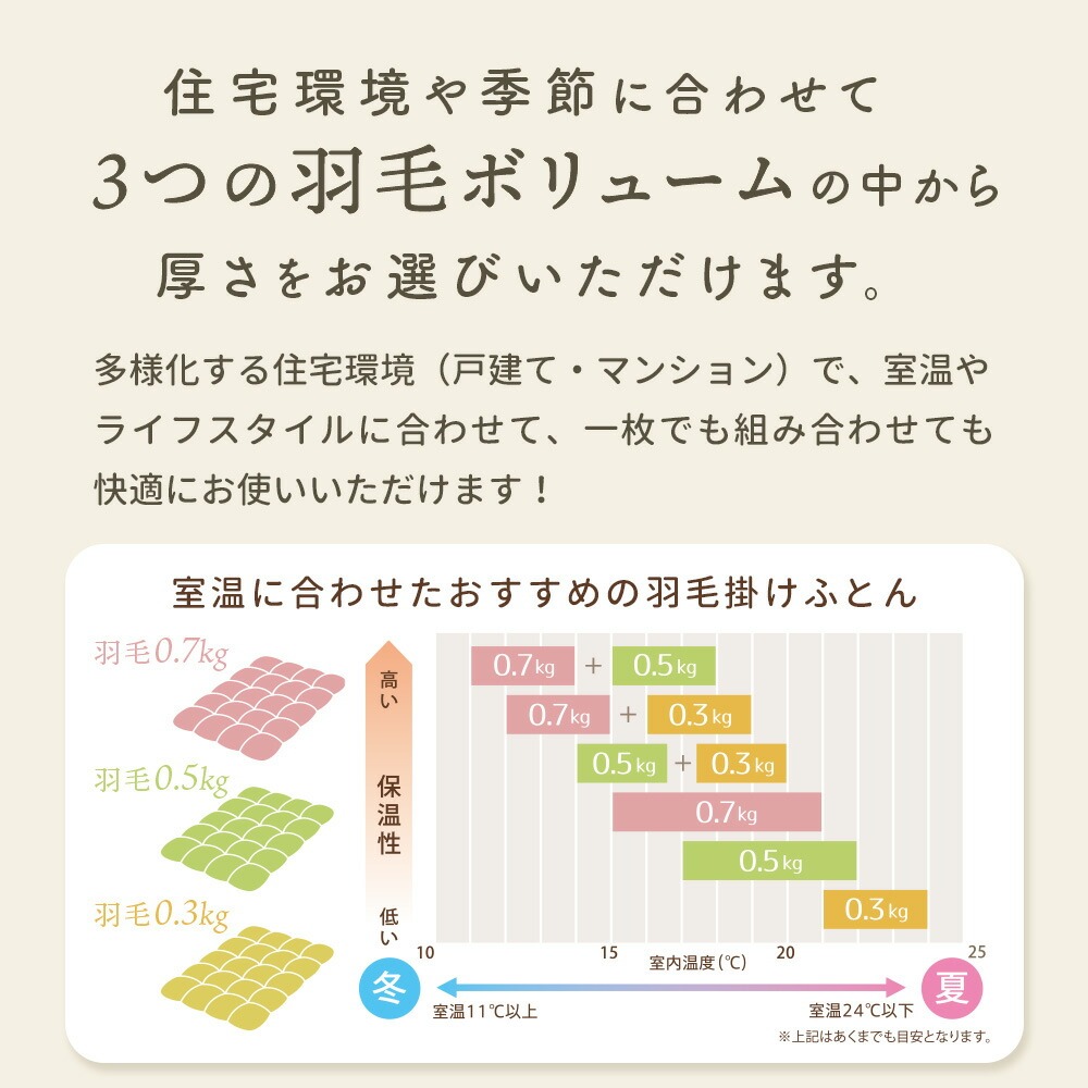 | 2枚合わせ | 羽毛量0.8kg | 羽毛量1.0kg | 羽毛量1.2kg【当ページ】 |