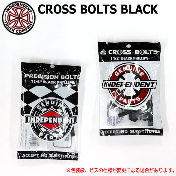 INDEPENDENT インディペンデント CROSS BOLTS BLACK プラス+ 1 1/4 1 1/2 ボルト・ナットset Gパーツ スペーサー用 メール便配送