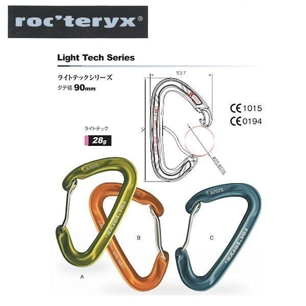 ■ブランド:ロックテリックス■品番:AMG11090WG■サイズ:縦径90mm■強度:22-7-7(KN)■重さ:28g■カラー:Aグリーン、Bラスト、Cブルー■