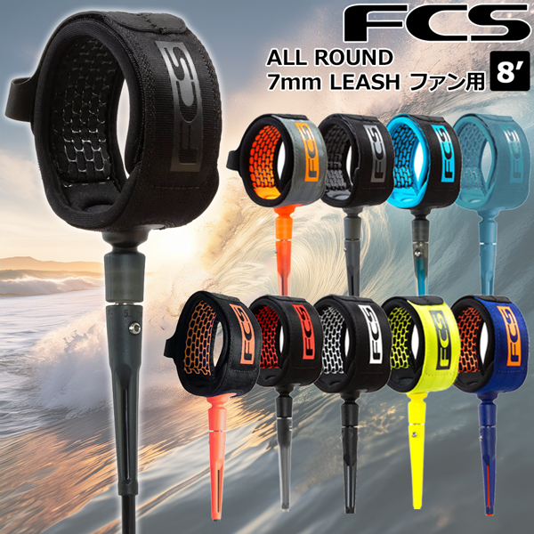 サーフィン リーシュコード FCS 8’ ALL ROUND 7mm ESSENTIAL LEASH レギュラー ファン用 エフシーエス