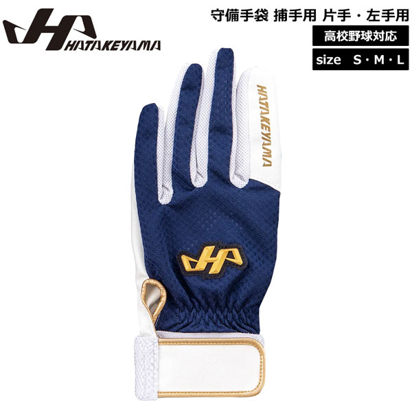 守備手袋 捕手用 野球 HATAKEYAMA ハタケヤマ 片手用 左手用 衝撃吸収材入 MG-C3 高校野球対応 ネイビー メール便