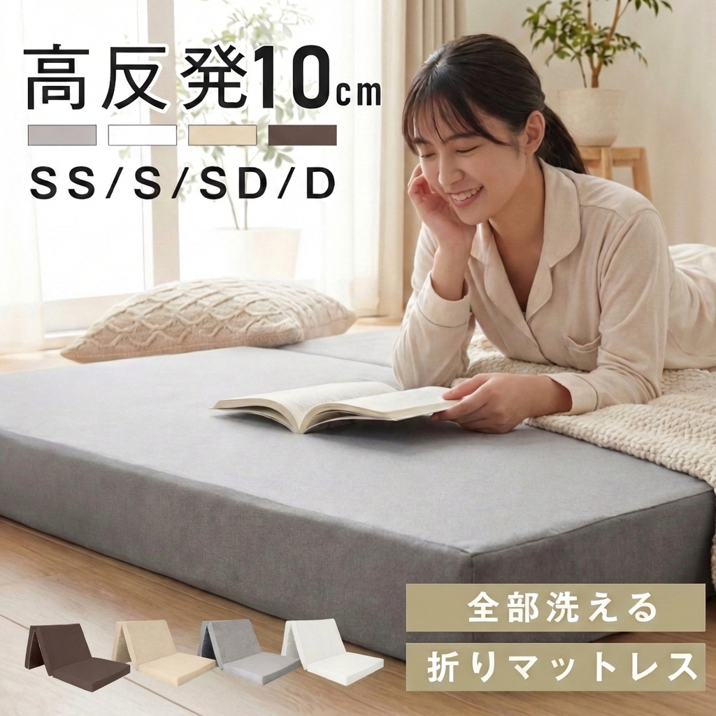マットレス 高反発 三つ折り 10cm厚 シングル 折りたたみ ベッドマットレス セミダブル ダブル 190N 抗菌 防臭 洗える 高反発マットレス 敷布団 en-mtrs01
