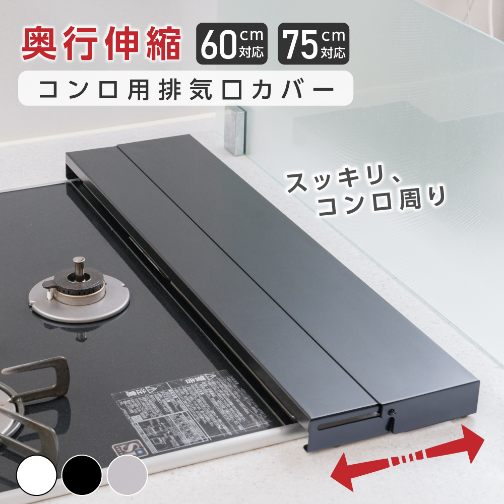 排気口カバー 奥行伸縮式 爆買 コンロ用 カバー フラットタイプ 60cm 75cm キッチン グリル 排気口 カバー 油はねガード ガスコンロ IH キッチン用品 スリム
