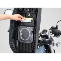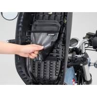 面ファスナーと伸縮バンドを組み合わせればシートとの隙間に小物をはさみ込むこともできます。