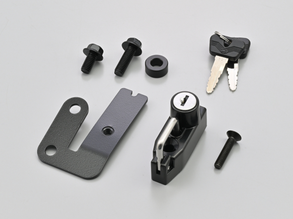 車両にボルトオンでヘルメットホルダーが取付可能。