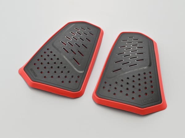 表にハードプロテクターの素材、裏はソフトプロテクターに使用される衝撃吸収素材を組み合わせ高い安全性を誇る新発想プロテクター