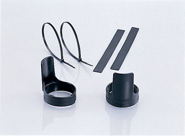 タイラップで固定する汎用タイプ、ミニバイクからビッグバイクまで装着可能。