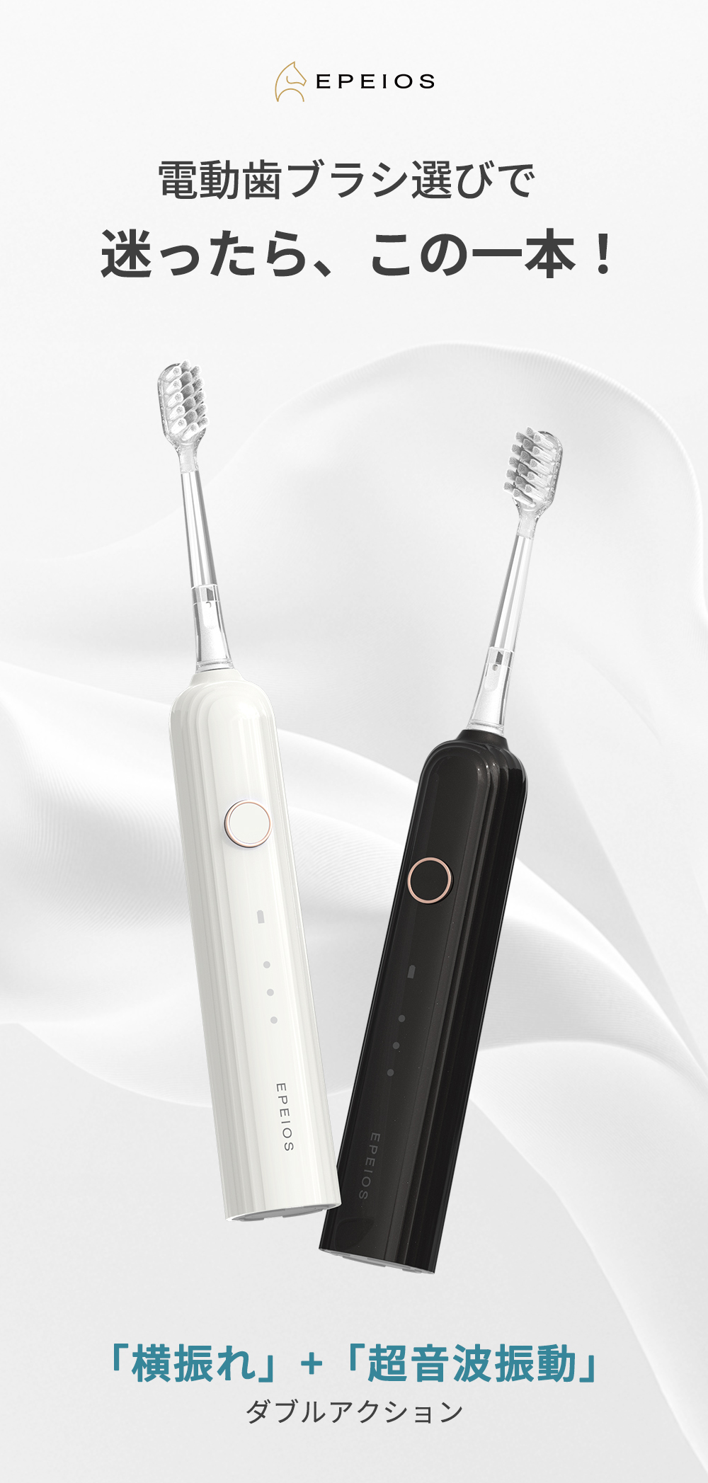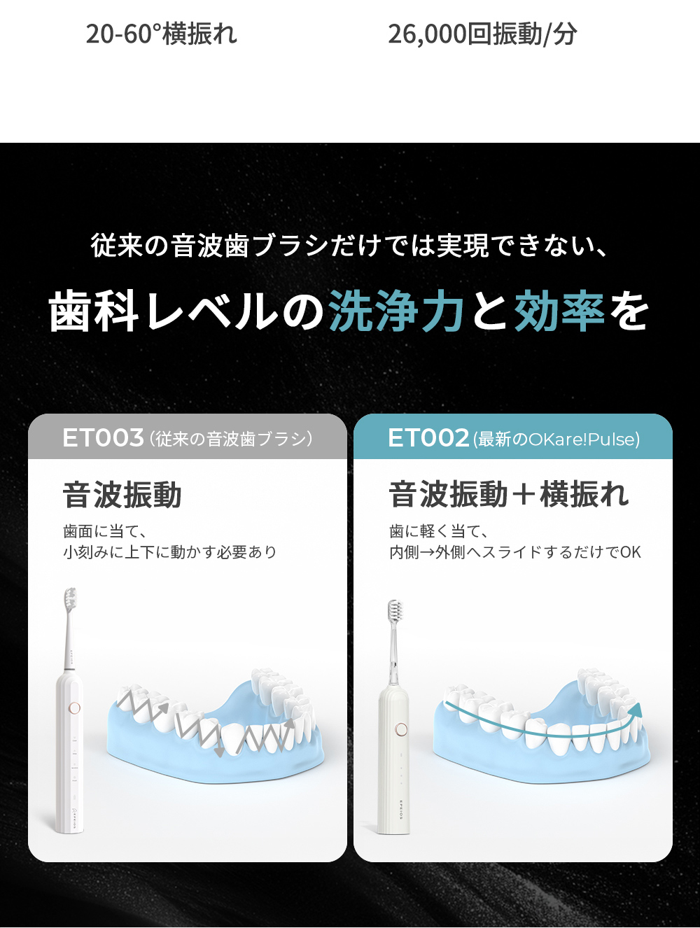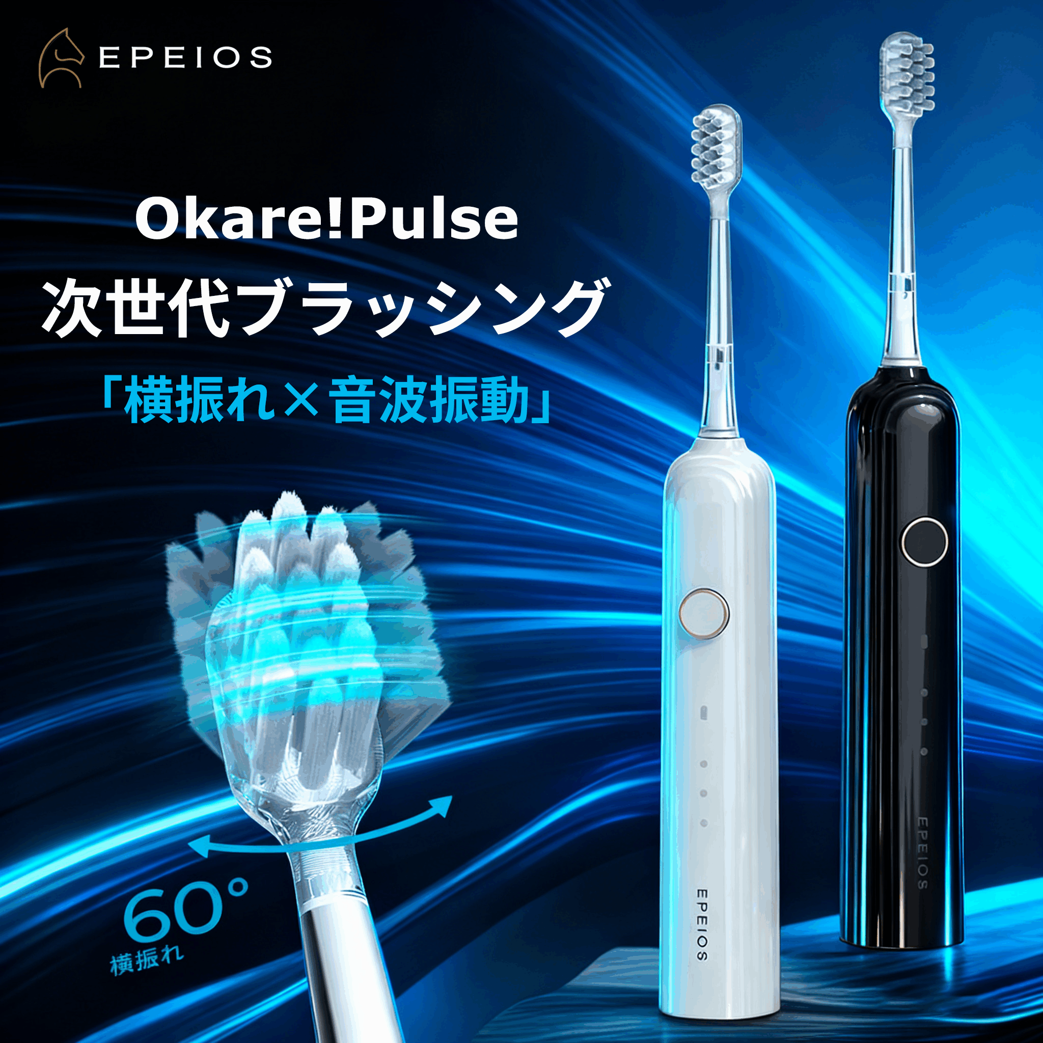 【予約販売★4月上旬入荷予定】二重の振動 電動歯ブラシ 横振れ 音波振動 電動歯磨き 45日間長持ち IPX7防水 静音 2分間タイマー EPEIOS OKare! Pulse ET002