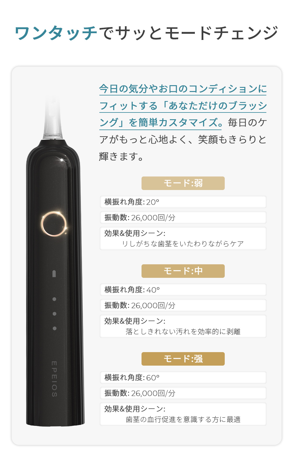 3.ブラッシングモード:弱・中・強