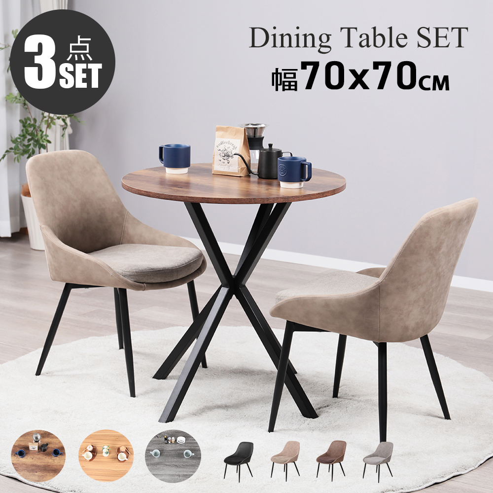 ダイニングテーブルセット 2人用 北欧 3点セット 丸 テーブル 70cm幅 メラミン天板 2人掛け チェア 2脚セット おしゃれ 円形 二人用 木目調 Ento(エント)