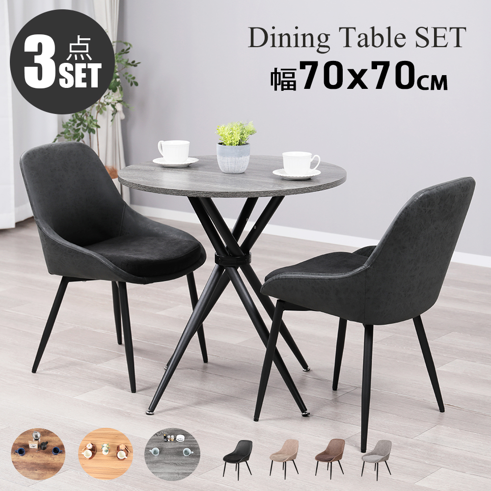 ダイニングテーブルセット 2人用 北欧 3点セット 丸 テーブル 70cm幅 メラミン天板 2人掛け チェア 2脚セット おしゃれ 円形 二人用 木目調 Ento(エント)