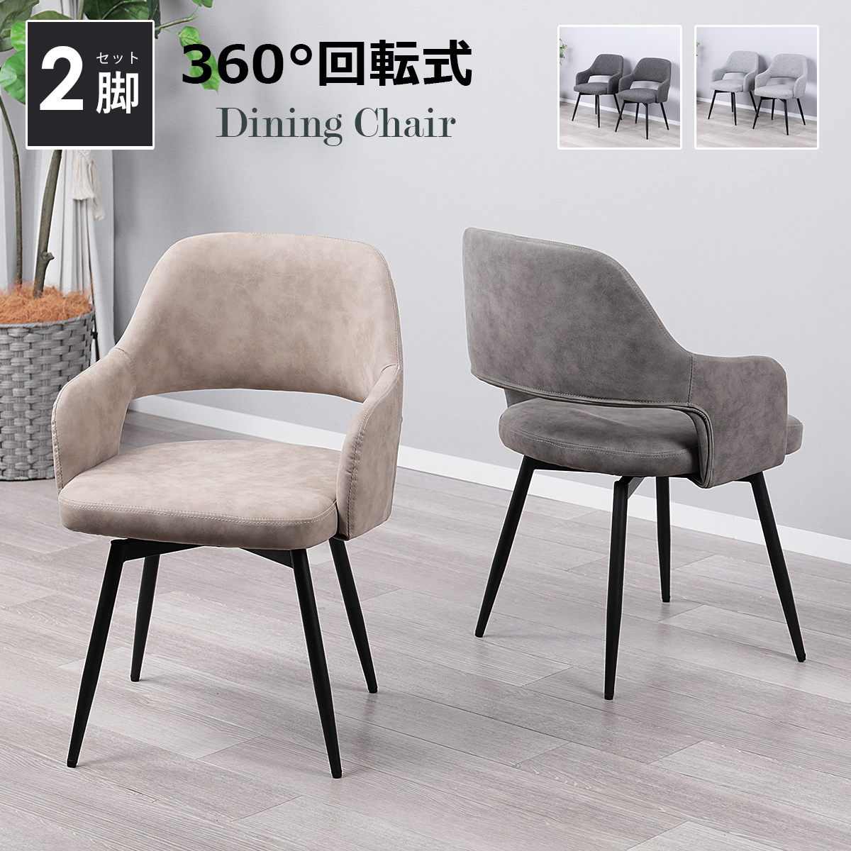 ダイニングチェア 2脚セット 回転式 肘付き おしゃれ 北欧 疲れにくい 360°回転椅子 食卓用椅子 イス PUレザー ファブリック
