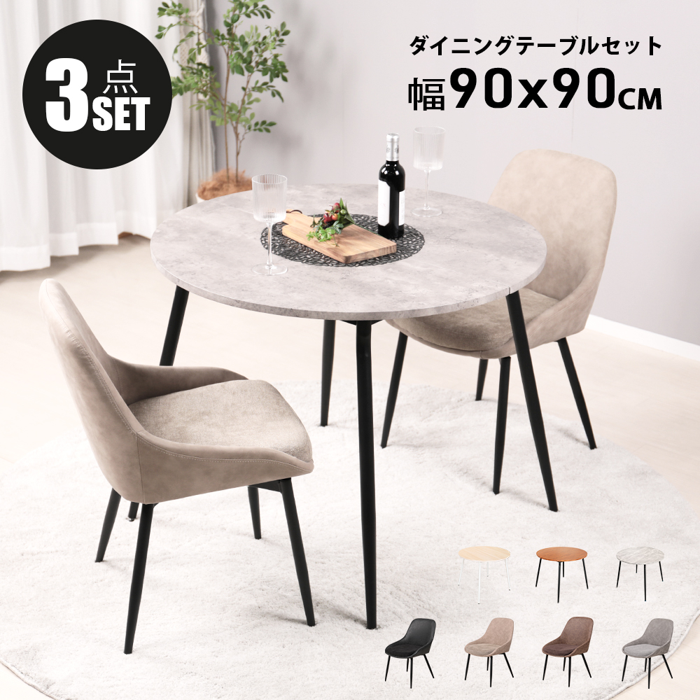 ダイニングテーブルセット 2人用 北欧 3点セット 丸 テーブル 90cm幅 2人掛け チェア 2脚セット おしゃれ 円形 二人用 木目調 大理石風 Ento(エント)