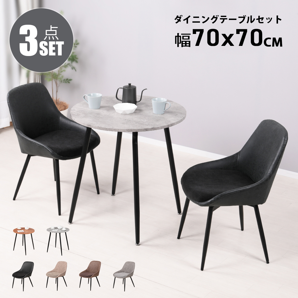 ダイニングテーブルセット 2人用 北欧 3点セット 丸 テーブル 70cm幅 2人掛け チェア 2脚セット おしゃれ 円形 二人用 木目調 大理石風 Ento(エント)