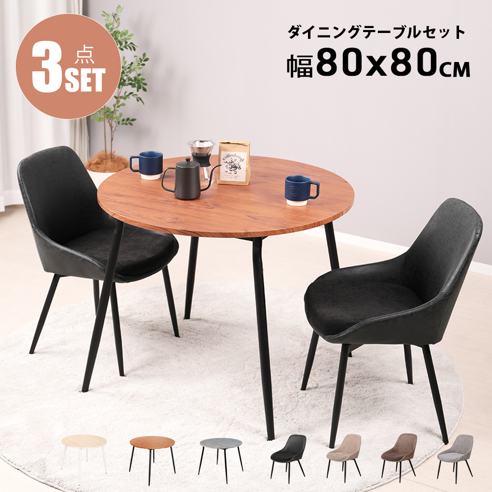 ダイニングテーブルセット 2人用 北欧 3点セット 丸 テーブル 80cm幅 2人掛け チェア 2脚セット おしゃれ 円形 二人用 木目調 大理石風  Ento(エント)