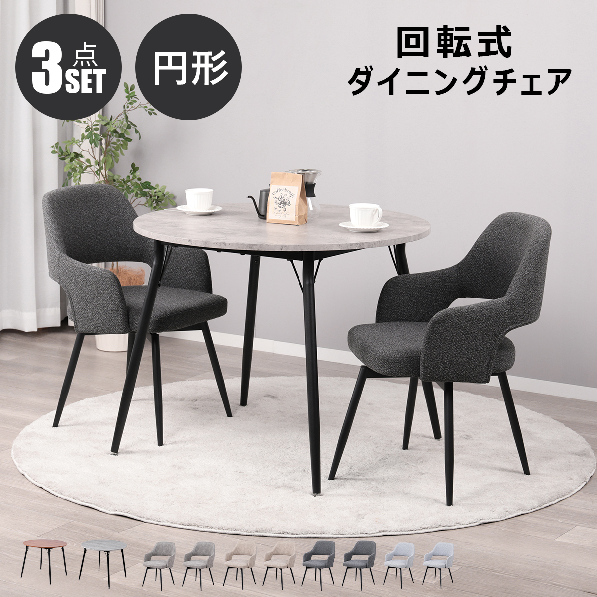 ダイニングテーブルセット 2人 3点セット 丸 北欧 90cm幅 円形 2人掛け ダイニングチェア 回転式 2脚セット 肘付き おしゃれ 360°回転 円卓 木目調 ストーン調