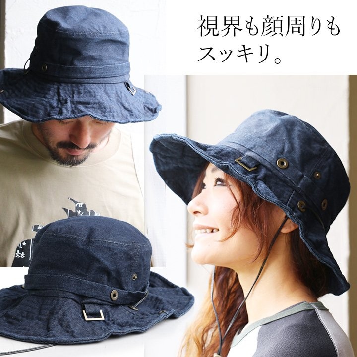 アドベンチャー ハット ワイヤー入り ツバ ワンウォッシュ デニム アクセント 帽子 ぼうし 運動会 遠足 自転車 アドベンチャーハット フェス アウトドアキャンプ メンズ レディース 40代 50代