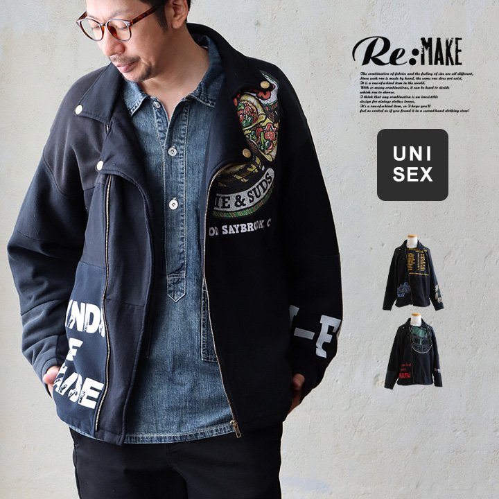 ジャケット ライダースジャケット メンズ レディース パッチワーク リメイク 古着 ワイド ゆったり 大きいサイズ カジュアル ヴィンテージ パティ