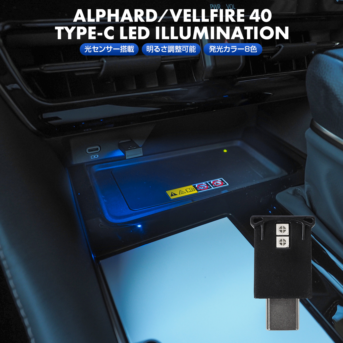 新型 アルファード ヴェルファイア 40系 USB Type-C LED イルミネーション ライト 1個 8色点灯 光センサー搭載 明るさ調節可 内装
