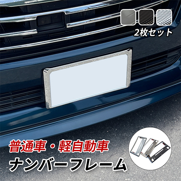 ナンバーフレーム 軽自動車 普通車 ナンバープレート 車 汎用 メッキ カーボン フロント リア 2枚セット 新基準 アクセサリー 外装 カスタム パーツ
