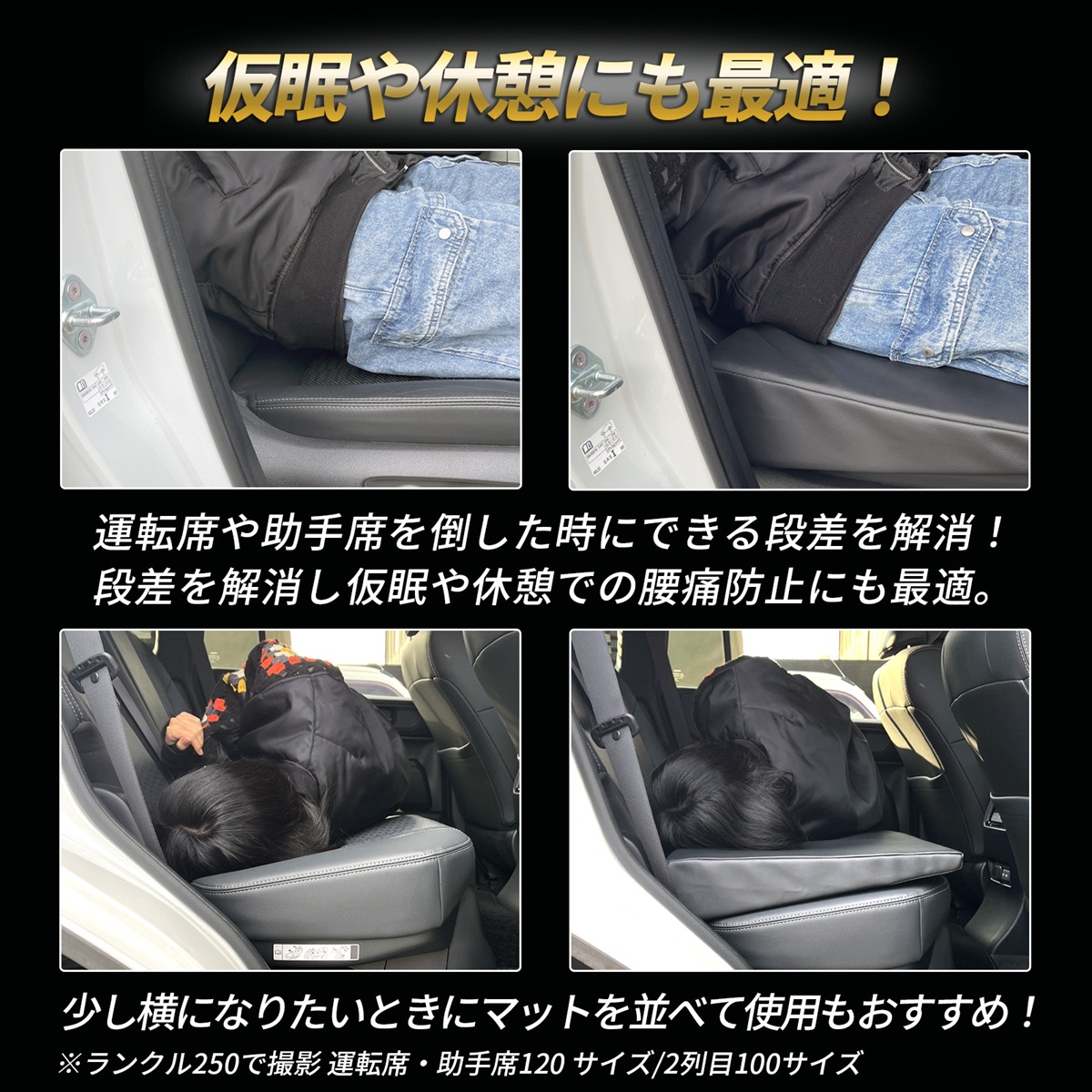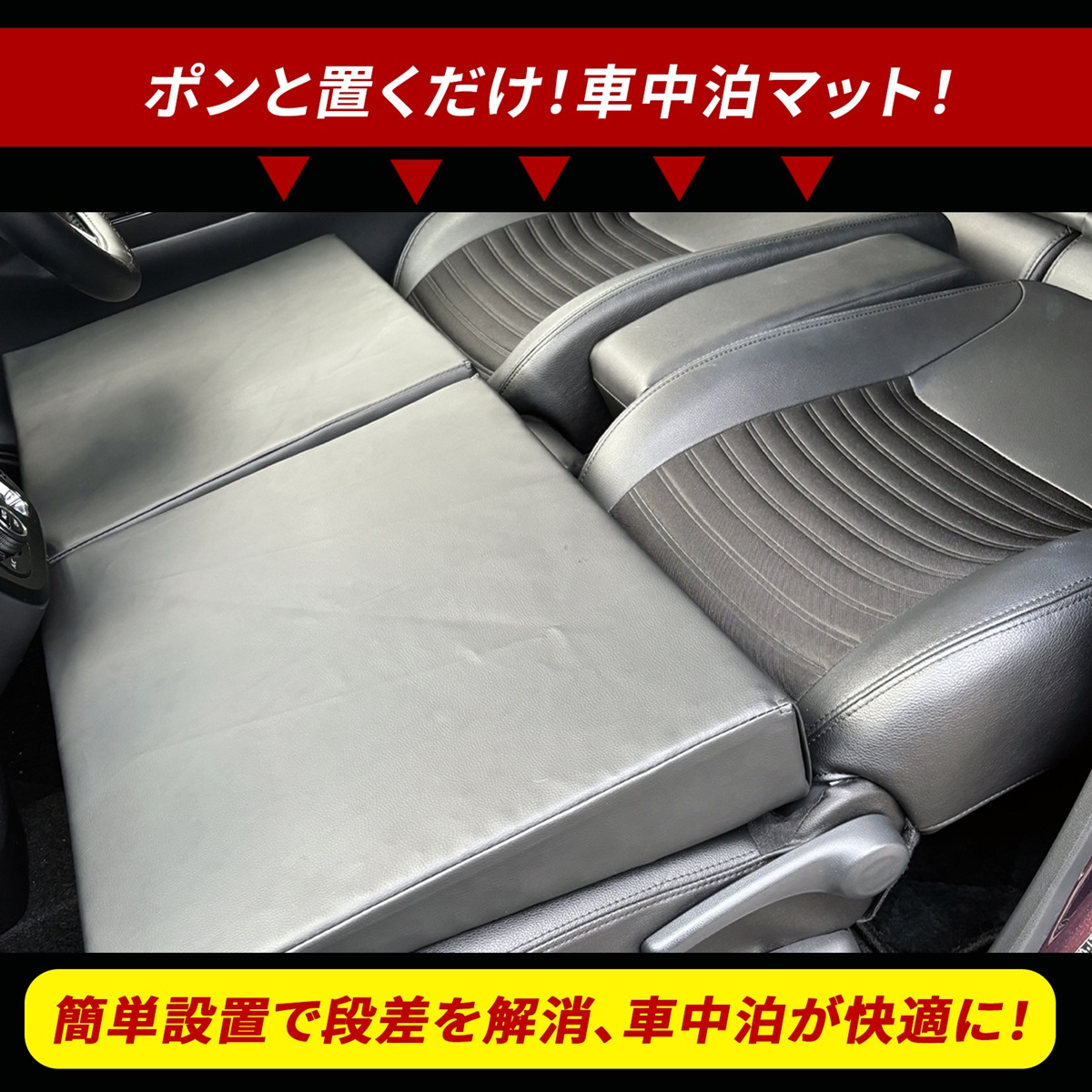 シートの段差・隙間をしっかり埋めるクッションだから、車内泊・仮眠・休憩に最敵。