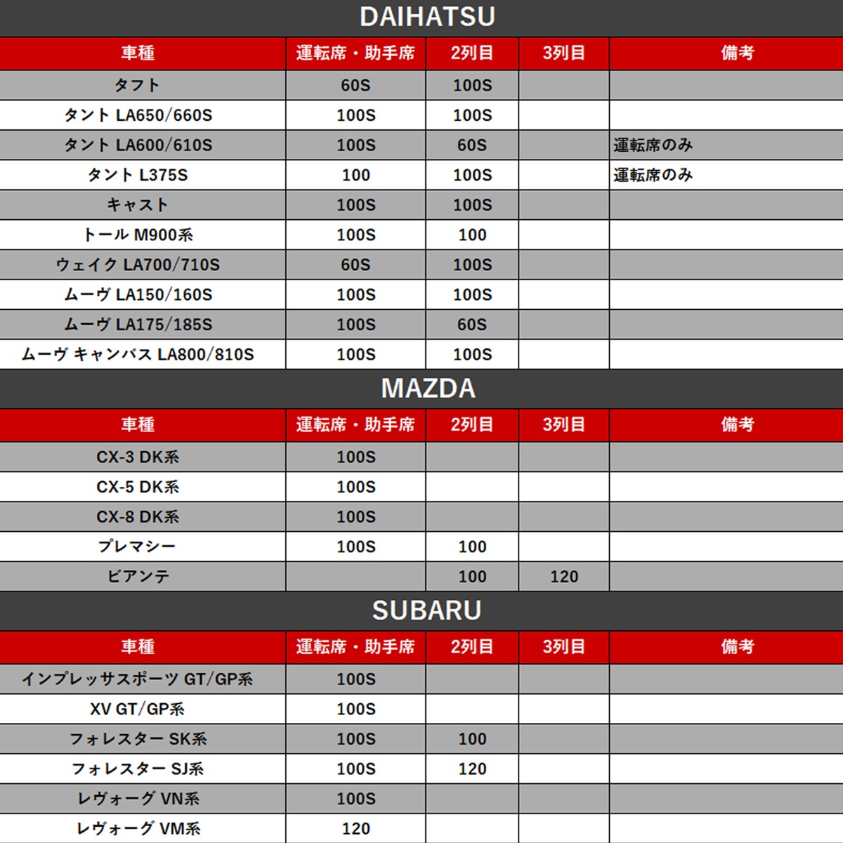 【適合車種例】