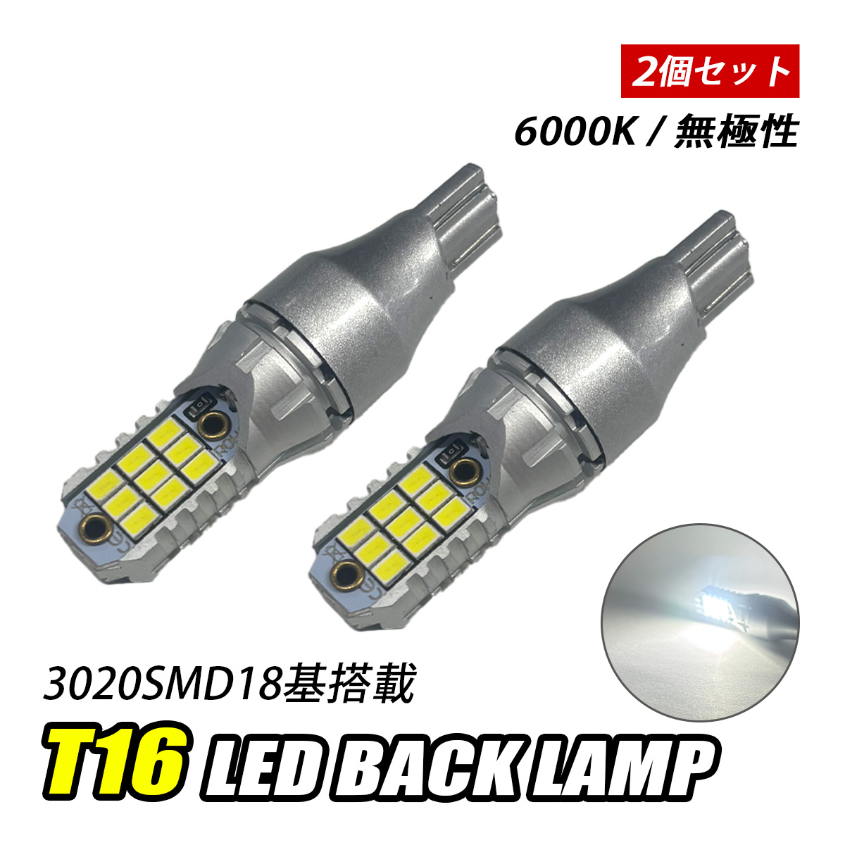 バックランプ LED T16 T10 後付け バルブ ホワイト 純正交換 汎用 12V車 6000K 無極性 爆光 2個 外装 カスタム パーツ トヨタ ホンダ ダイハツ スズキ 日産