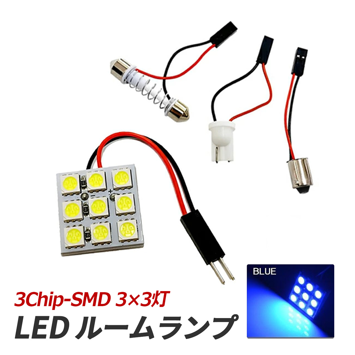 LED ルームランプ 車 汎用 9灯 SMD9 室内灯 1個 カスタム パーツ ブルー 車中泊 ヴェルファイア アルファード 20系 30系 ノア ヴォクシー 80系 セレナ C25 C26
