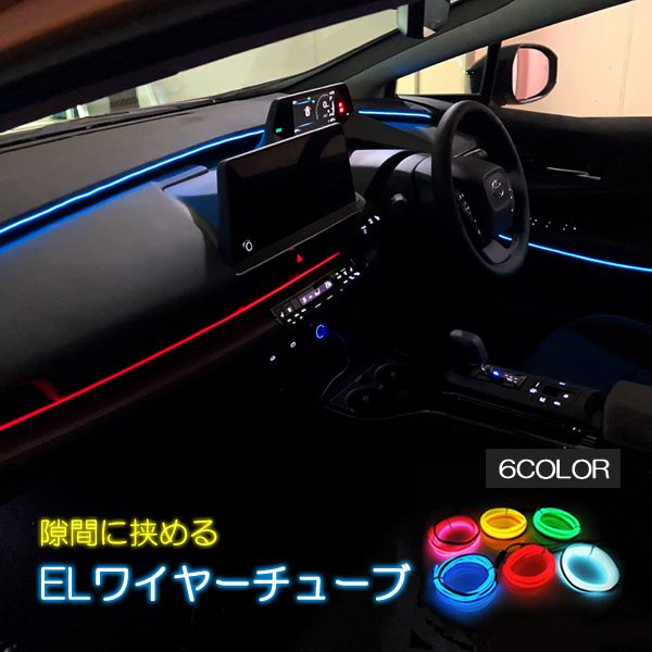 ELワイヤー 2M LED テープライト 間接照明 ネオン チューブライト 簡単取付 有機ELワイヤー ブルー ホワイト レッド ピンク グリーン イエロー ドレスアップ