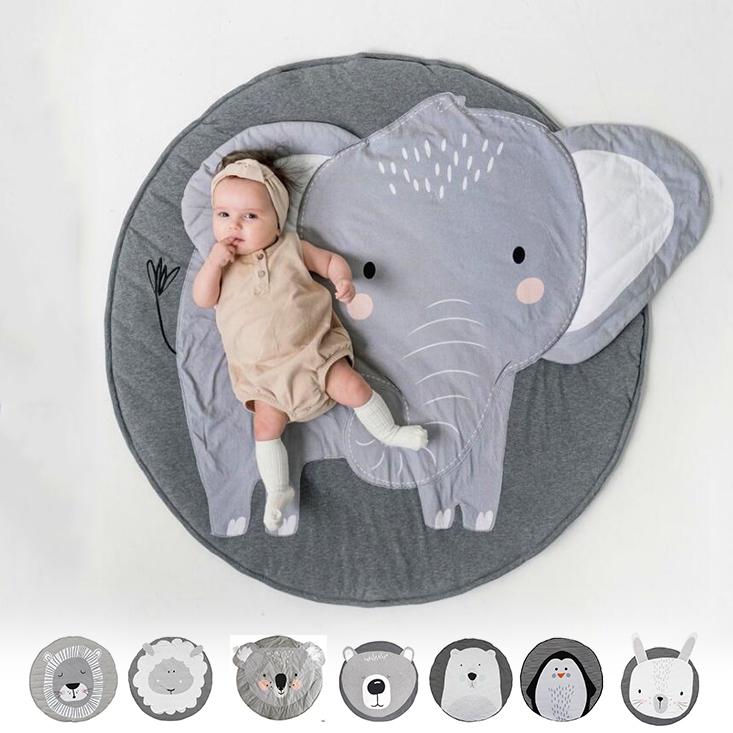 子供用カーペット ベービーマット ルームマット フロアマット 円形 キッズマット プレイマット 動物 幼児 滑り止め 柔らかい 洗える グレー 通年利用